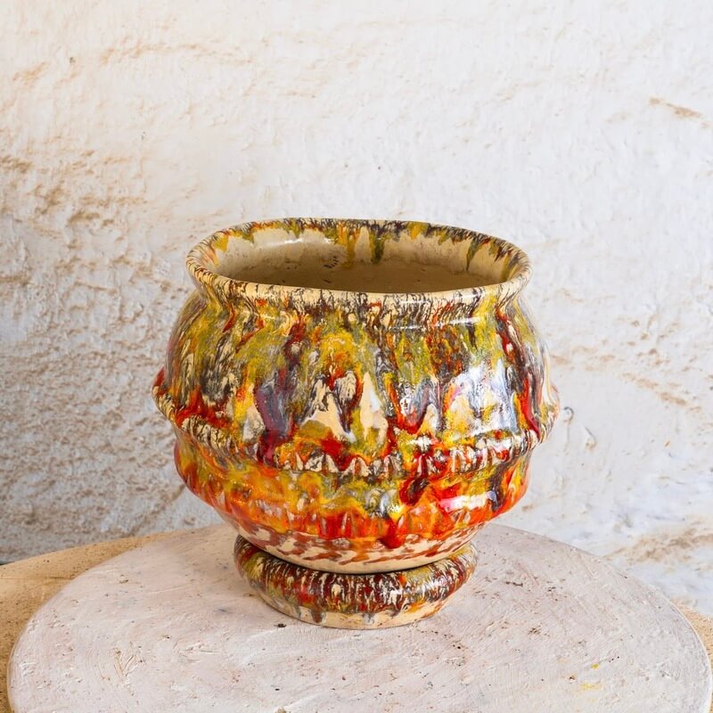 Ročno izdelan cvetlični lonec iz bele gline z drobnimi kamenčki, ki ustvarijo naravno, rahlo pikčasto teksturo. Sodoben, skoraj grafičen videz. Preprost, a izrazit kos, ki lepo poudari zelenje rastlin in se odlično poda v minimalistične ali skandinavsko navdahnjene prostore.